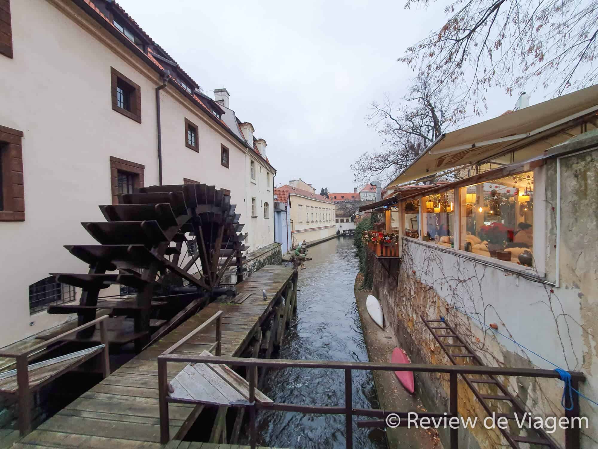 Se estiver perto do Muro do Lennon e quiser comer com a vista para um canal tem um restaurante bem charmoso. Se der sorte pode conseguir sentar na única mesa do lado de fora, que fica em um deck com vista para o canal.