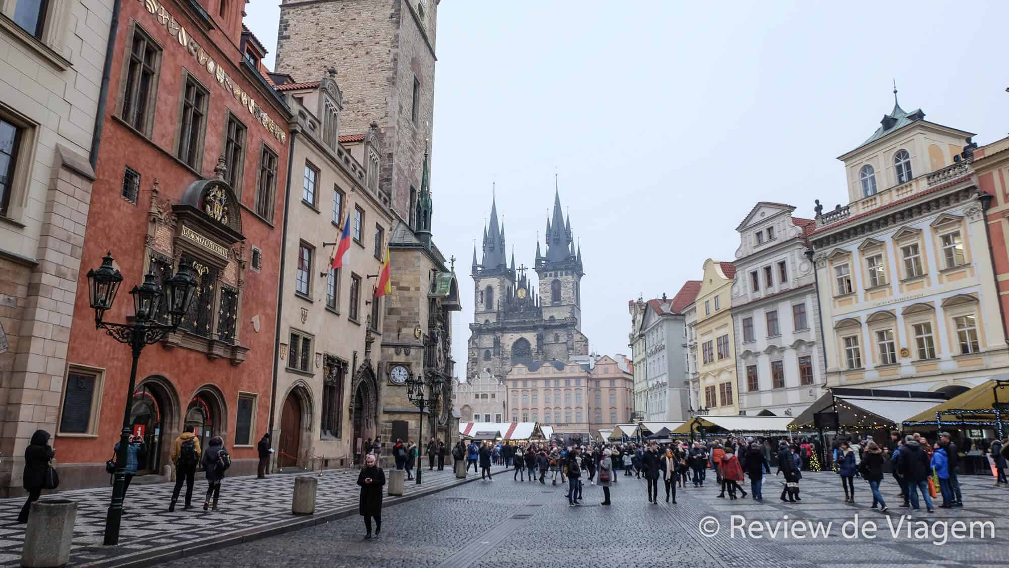A praça central de Praga (Old Town Square) é uma das principais atrações com construções lindíssimas e não poderia faltar nas Dicas de Praga . Atualmente no inverno há uma feirinha com comidas e artesanato, mas uma das principais atrações é o Relógio Astronômico. O Guto tentou entender e acabou desistindo, preferindo apenas admirar. Realmente é bem bonito e intrigante ao mesmo tempo – diferente do que se espera de um relógio. E toda hora cheia tem uma “movimentação especial” com um galo que canta e figuras que aparecem em duas pequenas janelas na parte de cima.