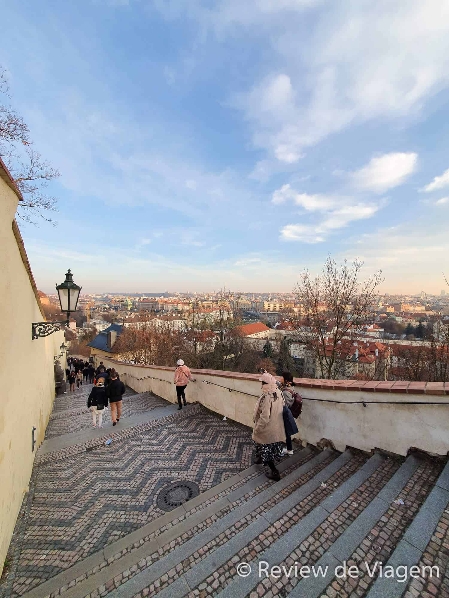 A primeira opção é inteiramente de graça. Você pode subir até o castelo a pé (ou fazer como nós e sair da Torre Petrin e ir caminhando até o castelo), passar pela segurança (um detector de metais e uma breve revista na bolsa/mochila), caminhar pela lateral, fotografar a bela entrada da Catedral e ir descendo até chegar no rio, com algumas paradas no meio do caminho para fotos ( com direito a um mirante ). Outra ótima experiência para quem não tem tempo ou paciência de explorar o castelo ( às vezes as filas para a entrada são demoradas ).