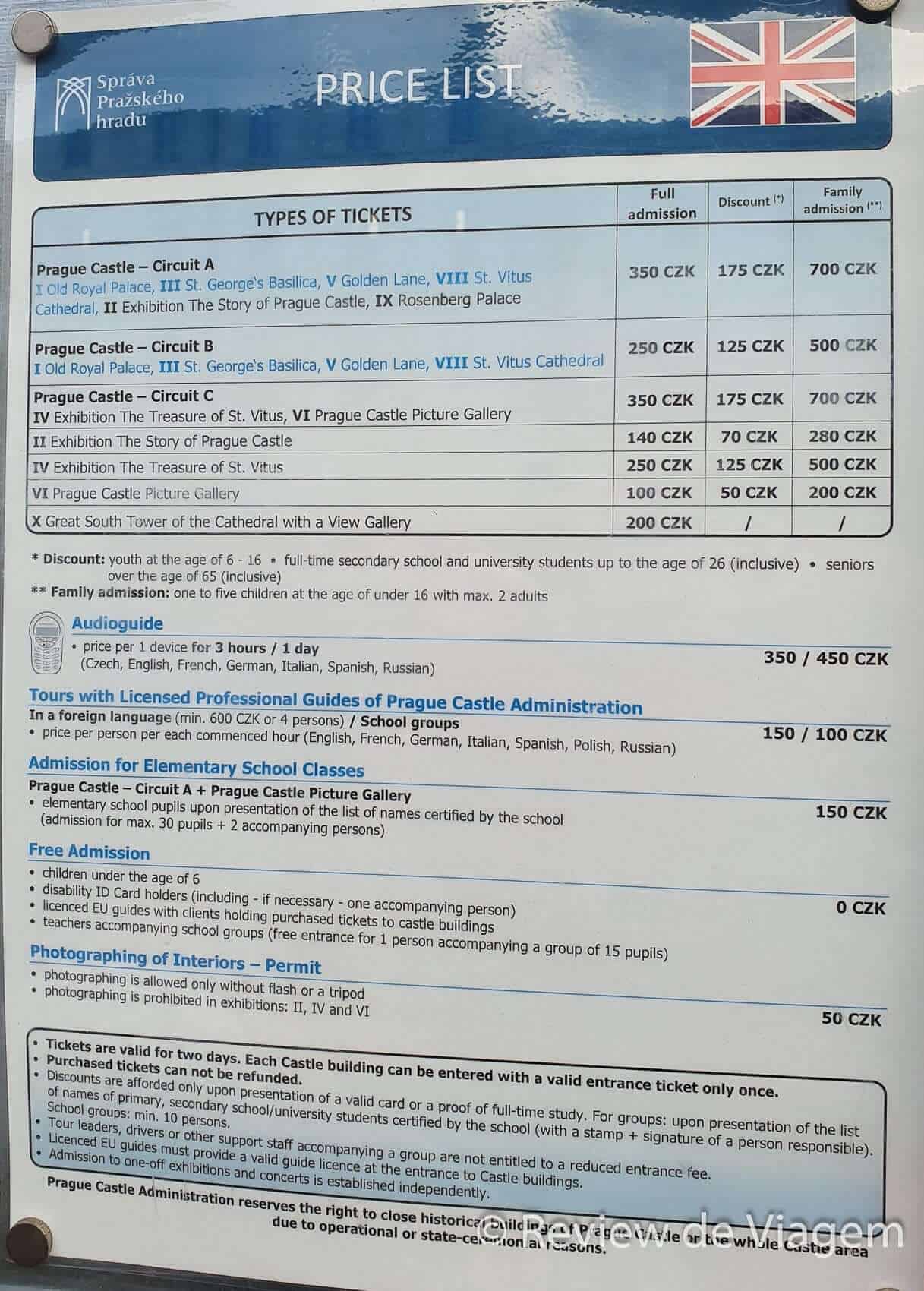 Para maiores informações de horários e valores vamos deixar o site oficial do castelo e a tabela de preços.